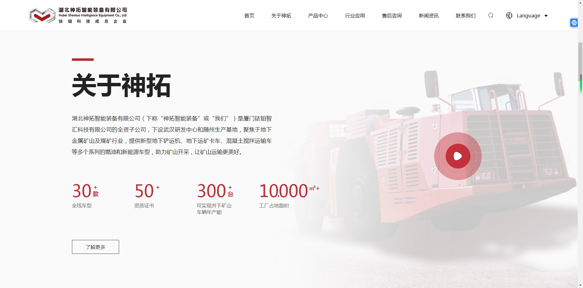 湖北神拓智能裝備有限公司是廈門銥鉬智匯科技有限公司的全資子公司,下設武漢研發中心和隨州生產基地,是聚焦于金屬礦及煤礦的地下裝備研發、生產、銷售、售后和出口業務的科技型企業,產品面向全球市場。 立足于科技創新,以客戶需求為導向,目前擁有鏟運機、運礦卡車、新一代混凝土攪拌運輸車等多個系列的燃油、純電車型版本,適應客戶多種情形下的開采需求,提升礦山開采的生產效率和經濟效益,并努力提高地下作業工人的工作安全感和幸福感。