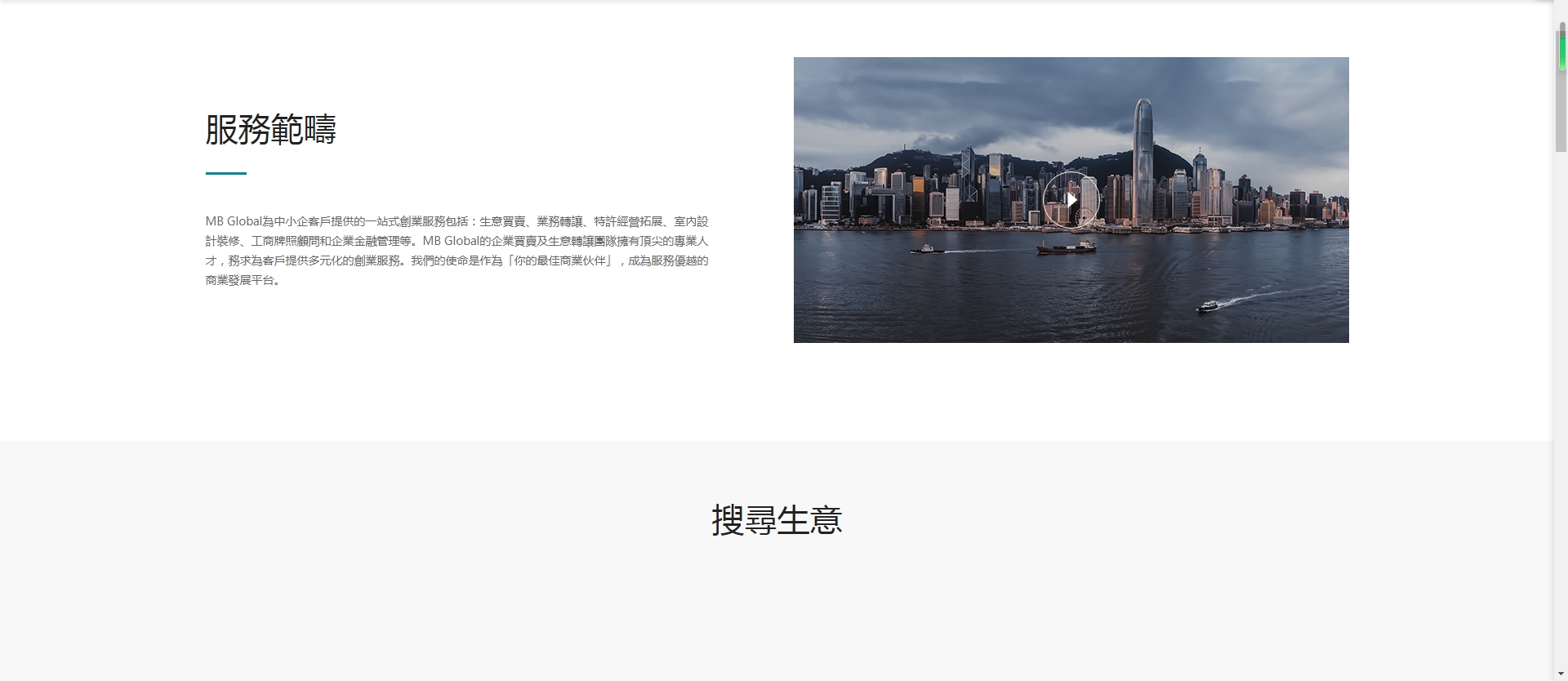 MB Global為中小企客戶提供的一站式創業服務包括:生意買賣、業務轉讓、特許經營拓展、室內設計裝修、工商牌照顧問和企業金融管理等。MB Global的企業買賣及生意轉讓團隊擁有頂尖的專業人才,務求為客戶提供多元化的創業服務。我們的使命是作為「你的最佳商業伙伴」,成為服務優越的商業發展平臺。